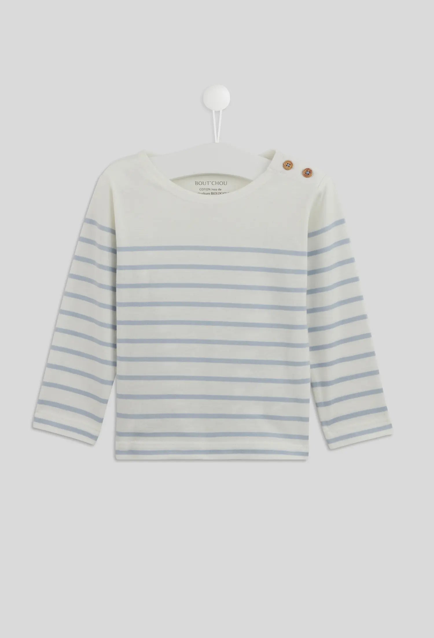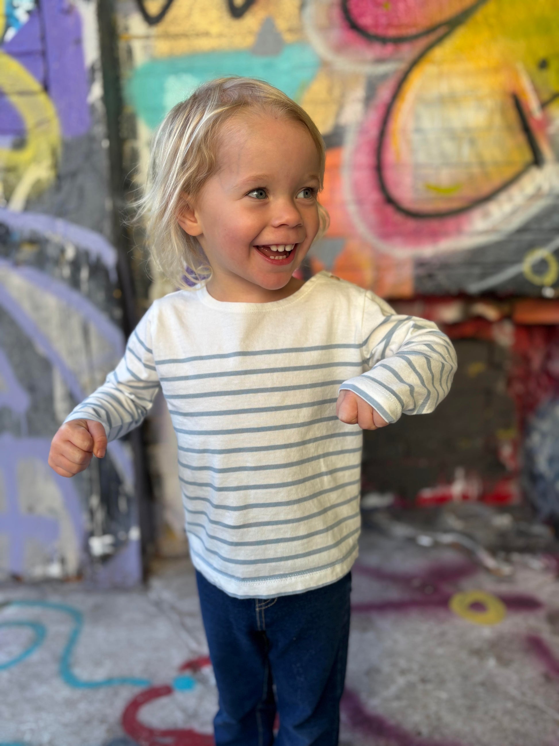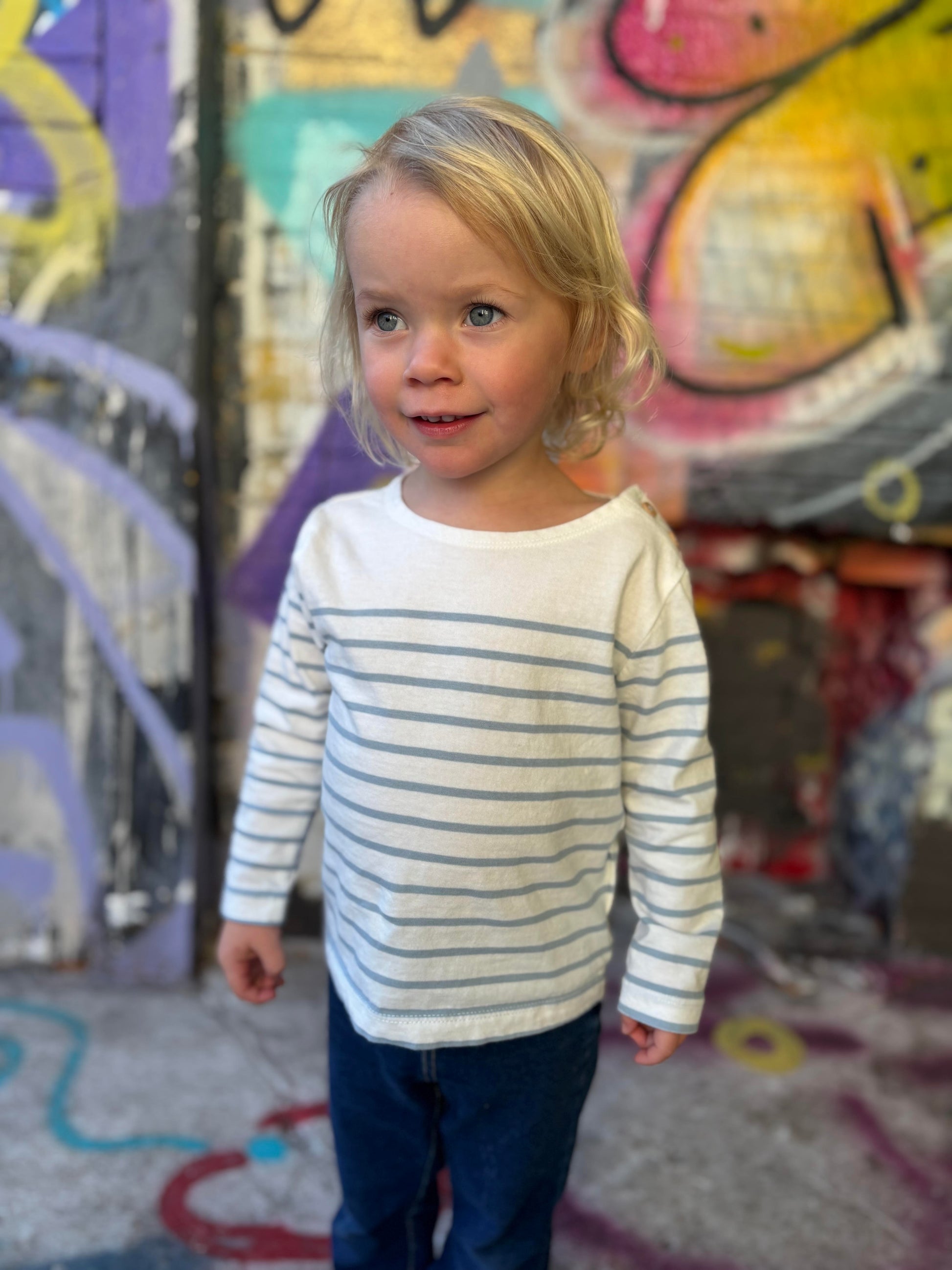 Inspired by the surf and sun of France’s Basque coast, the Biarritz Marinière is our lightest take on the French stripe. Woven in airy cotton and kissed with pale blue, it’s made for little ones who live in their stripes — from the waves of Biarritz to the beaches of California